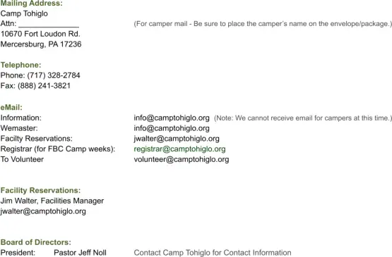© 1979-2025 Fellowship of Bible Churches, Inc. • Camp Tohiglo. Camp Tohiglo is owned & operated by the Fellowship of Bible Churches, Inc.
