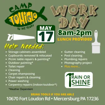 Camp Work Day is MAY 17 - We'd love to see you! Can't make it? - that's